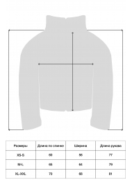 XL-XXL: Длина по спинке - 70см, Ширина - 68см, Длина рукава (от горлового шва) - 81см