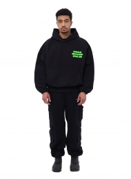 ZNY hoodie from the SS25® collection, made of high-quality high-density cotton. The model has a voluminous hood, a round collar and an oversized fit.